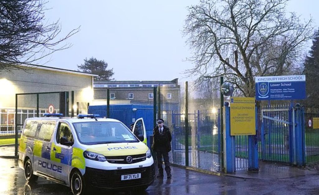 Το περιστατικό σημειώθηκε το μεσημέρι στο Λύκειο Κίνγκσμπερι, στη συνοικία Μπρεντ. Στο σημείο έσπευσαν ασθενοφόρα και περιπολικά, μετά από ειδοποίηση ότι ένας 13χρονος δέχτηκε επίθεση με μαχαίρι.