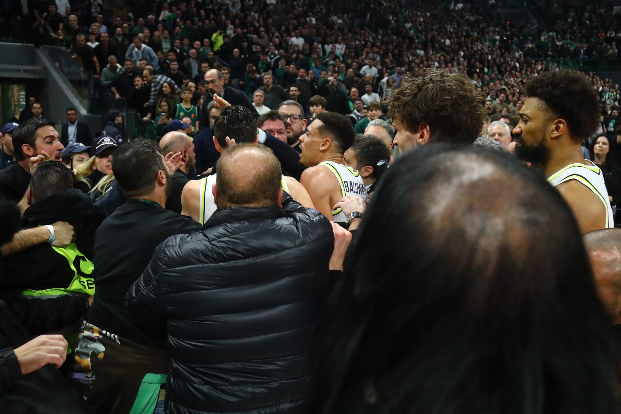 Στο τέλος της δραματικής αναμέτρησης μεταξύ Παναθηναϊκού AKTOR και Φενέρμπαχτσε, η οποία ολοκληρώθηκε με νίκη 85-83 για τους Τούρκους, επικράτησε αναστάτωση στο glass floor. Το παιχνίδι έληξε με ένα εντυπωσιακό buzzer beater από τον Γουέιντ Μπάλντουιν, αλλά αμέσως μετά το τελευταίο σφύριγμα, σημειώθηκε γενική σύρραξη.
