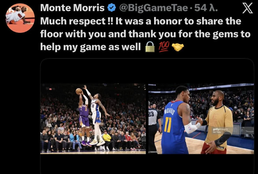 Η είδηση της απόσυρσης του Πολ συγκίνησε τον κόσμο του μπάσκετ, με πολλές προσωπικότητες του αθλήματος να σπεύδουν να τον αποχαιρετίσουν και να τον ευχαριστήσουν για την κληρονομιά που αφήνει πίσω του. Ένας από αυτούς ήταν και ο Μόντε Μόρις. Αν και οι δύο τους δεν συνεργάστηκαν ποτέ στο γήπεδο, η αναγνώριση του παιχνιδιού του ενός από τον άλλο ήταν άμεση και αυθόρμητη, όπως συχνά συμβαίνει στον κόσμο του μπάσκετ.
