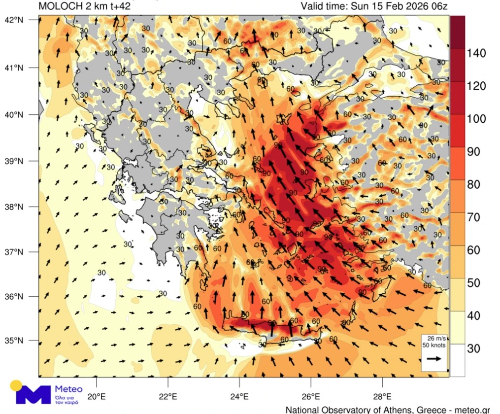 Το φαινόμενο αναμένεται να φτάσει στη μέγιστη έντασή του κατά τη διάρκεια της σημερινής ημέρας, Κυριακής 15 Φεβρουαρίου, από το μεσημέρι και μετά, επηρεάζοντας μεγάλο μέρος της επικράτειας.