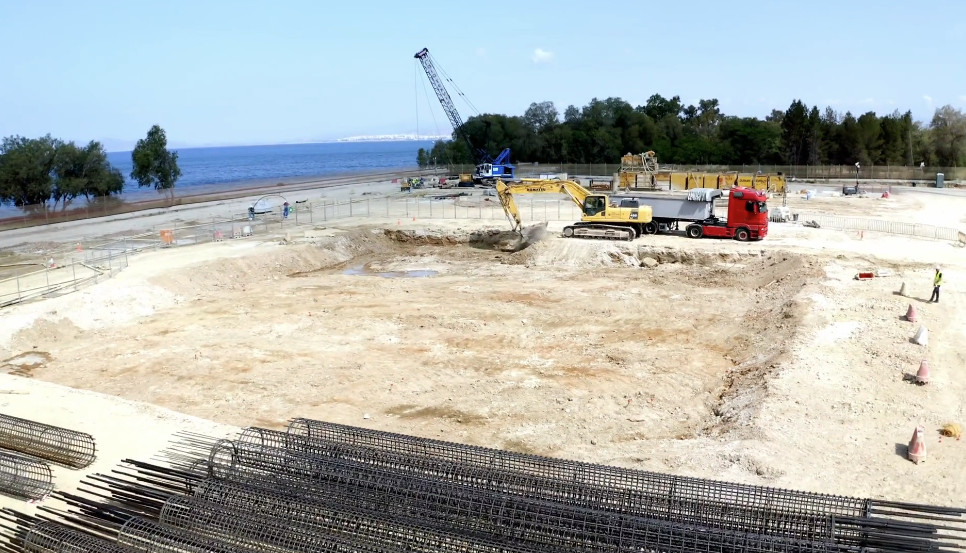 Οι εργασίες, που ξεκίνησαν τον Αύγουστο του 2022, προχωρούν πλέον με εντατικούς ρυθμούς, έχοντας ήδη ολοκληρώσει τα πιο απαιτητικά στάδια της υπόγειας θωράκισης. Η θεμελίωση του κτιρίου, που ξεκίνησε τον Δεκέμβριο του 2022, υπήρξε ένα τεχνικό επίτευγμα. 300 πάσσαλοι διαμέτρου έως 1,5 μέτρου «ρίζωσαν» στο έδαφος, ενώ τον Φεβρουάριο του 2023 ολοκληρώθηκε ένας πρότυπος διαφραγματικός αντιπλημμυρικός τοίχος περιμέτρου 520 μέτρων.
