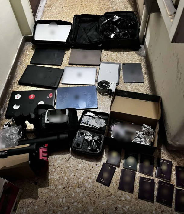 Κατά τις έρευνες εντοπίστηκαν και κατασχέθηκαν περισσότερα από 9.600 φαρμακευτικά δισκία, 36 πιστοποιητικά έγγραφα (ταυτότητες, διαβατήρια, διπλώματα), έξι laptop, δύο tablet, τρία drones, μία παιχνιδομηχανή, ηλεκτρικό πατίνι, φωτογραφική μηχανή, τρία κινητά τηλέφωνα και πλήθος εγγράφων.