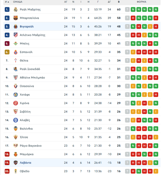 Το πρόγραμμα της επόμενης (25ης) αγωνιστικής της La Liga: