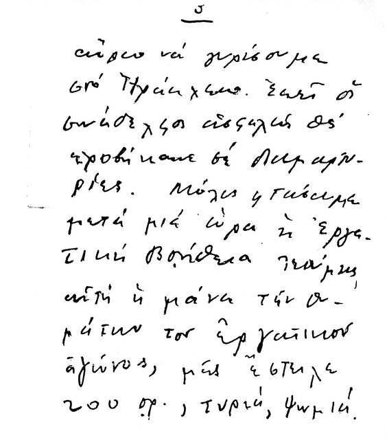 Μόλις φθάσαμε η Εργατική Βοήθεια Ρεθύμνου έστειλε 200 δρχ., τυριά, ψωμιά να μη στεναχωρηθείς καθόλου. Τη Δευτέρα κατέβα στο Ηράκλειο να πάρεις τα λεφτά, από την Τράπεζα. Να μη στεναχωρηθείς καθόλου, το πολύ-πολύ να μας κρατήσουν μερικές μέρες και να μας αφήσουν έπειτα ή να πάμε ως τον Πειραιά. Εδώ ήρθανε και μας επισκεφθήκανε οι φίλοι μας οι Ανδρουλάκηδες. Χαιρετισμούς στους φίλους. Να μη στενοχωρηθής καθόλου. Σε φιλώ γλυκά Ναπολέων».