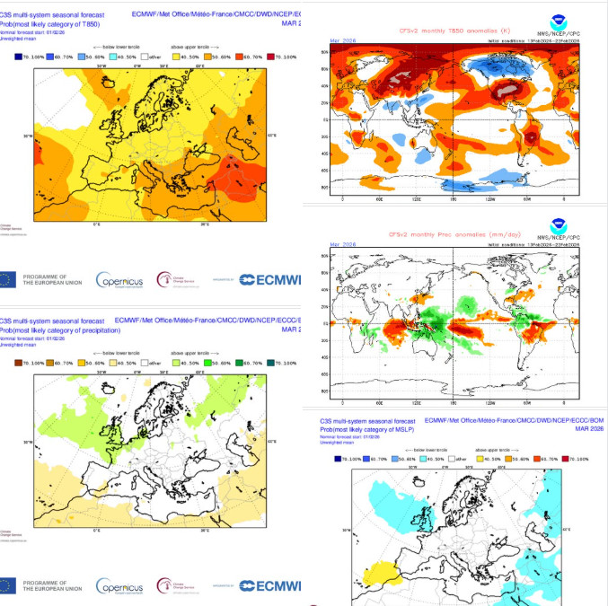 «Σύμφωνα λοιπόν με το σήμα που παίρνουμε από τα μεγαλύτερα μετεωρολογικά κέντρα υπάρχει αυξημένη πιθανότητα ο Μάρτιος του 2026 να είναι πιο θερμός από τα κανονικά επίπεδα (περίπου ένα βαθμό) ενώ δεν υπάρχει τάση για περισσότερες ή λιγότερες βροχές και χιόνια».