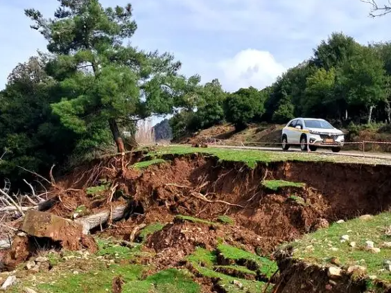 Ο κεντρικός δρόμος προς το χωριό έχει υποστεί σοβαρές καθιζήσεις, που σε ορισμένα σημεία ξεπερνούν το ένα μέτρο, καθιστώντας την πρόσβαση ιδιαίτερα επικίνδυνη.