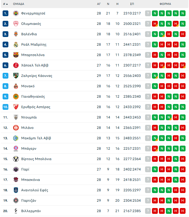 Η ήττα αυτή αφήνει τον Ολυμπιακό στο 18-10, παραμένοντας στην πρώτη τριάδα της κατάταξης, ενώ η Ζαλγκίρις ανεβαίνει στο 17-12, παραμένοντας κοντά στην εξάδα.