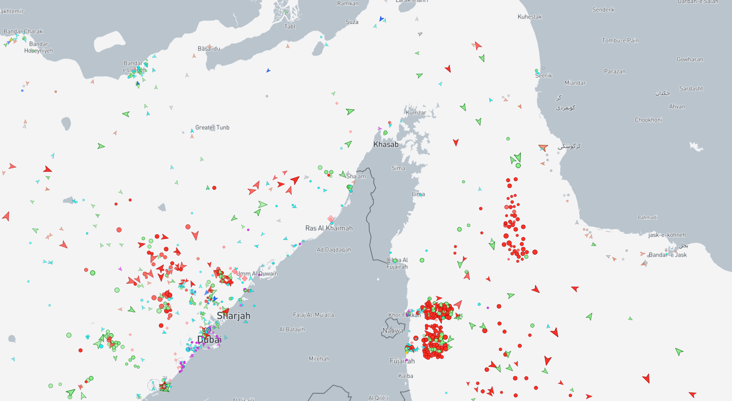Τουλάχιστον 150 δεξαμενόπλοια, μεταξύ των οποίων πλοία μεταφοράς αργού πετρελαίου και υγροποιημένου φυσικού αερίου, έριξαν άγκυρα σε ανοιχτά νερά του Κόλπου, πέρα από το Στενό του Ορμούζ.