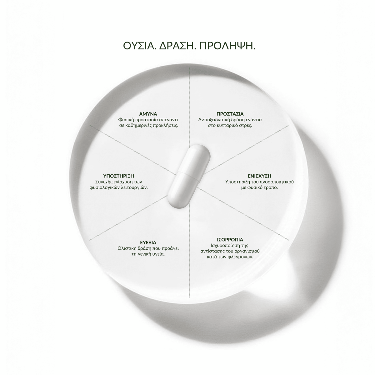 Κάθε κάψουλα αντιστοιχεί στη συμπυκνωμένη πολυφαινολική αξία περίπου τριών κουταλιών υψηλής ποιότητας αγουρέλαιου, προσφέροντας τα οφέλη του χωρίς το αντίστοιχο θερμιδικό φορτίο που θα συνεπαγόταν η καθημερινή κατανάλωσή του σε αυτές τις ποσότητες.