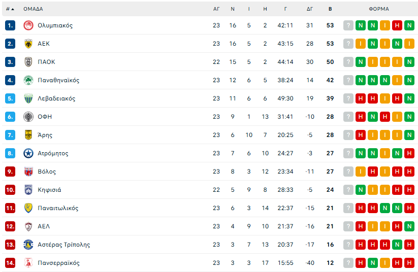 Με αυτό το τρίποντο μάλιστα η ομάδα του Ράφα Μπενίτεθ ξεπέρασε τον Λεβαδειακό στη βαθμολογία και πλέον βρίσκεται στην 4η θέση με 42 πόντους έναντι 39 των Βοιωτών.