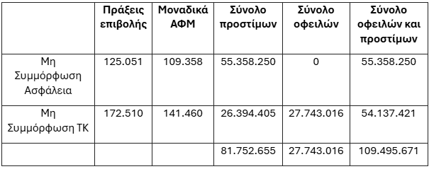 Το συνολικό ποσό των προστίμων και οφειλών ανέρχεται σε 109,5 εκ. ευρώ.