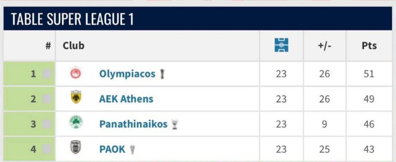 Αυτή είναι η βαθμολογία της Super League πέρσι στην 23η αγωνιστική