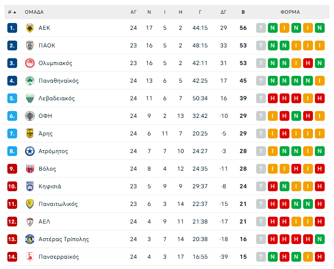 Το πρόγραμμα και τα αποτελέσματα της 24ης αγωνιστικής