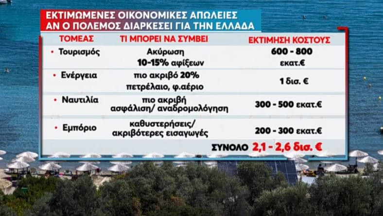 Εκτιμώμενες οικονομικές απώλειες για την Ελλάδα αν παραταθεί ο πόλεμος