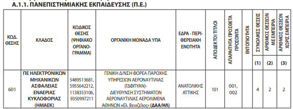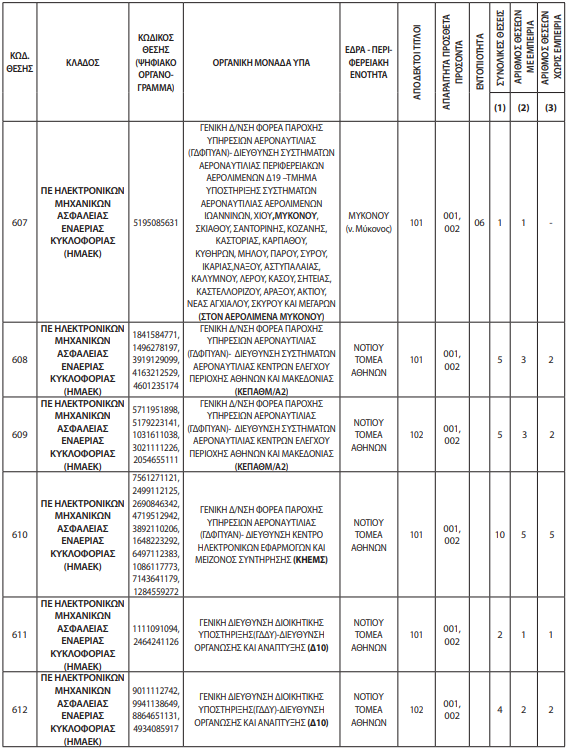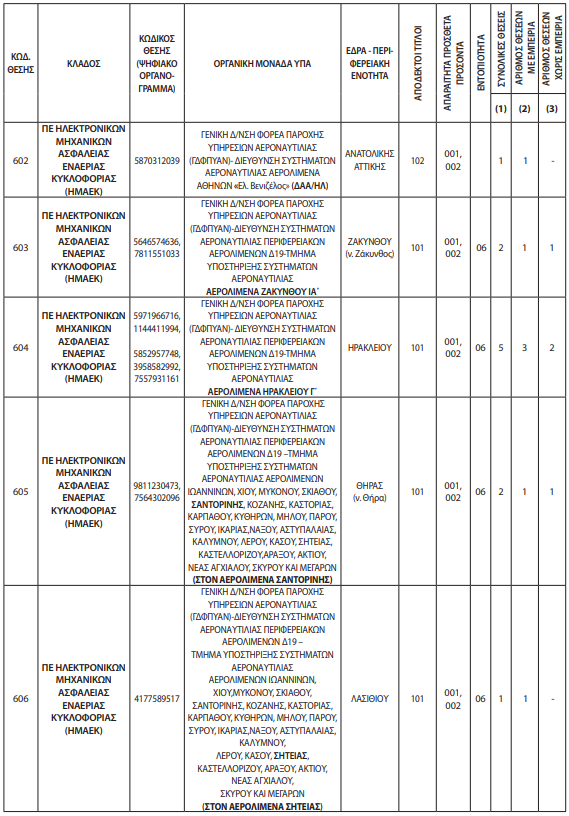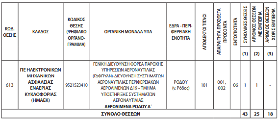 Ο διαγωνισμός αφορά την πλήρωση 43 θέσεων μόνιμου προσωπικού στην Υπηρεσία Πολιτικής Αεροπορίας (ΥΠΑ), του Υπουργείου Υποδομών και Μεταφορών, με σειρά προτεραιότητας.
