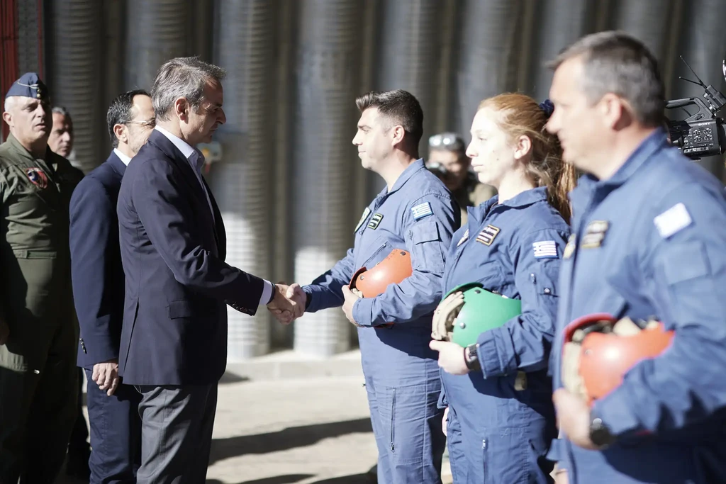 Ο Έλληνας πρωθυπουργός, συνοδευόμενος από τον πρόεδρο της Κυπριακής Δημοκρατίας, συναντήθηκε με τους πιλότους της Πολεμικής Αεροπορίας και τους χαιρέτησε στον χώρο όπου επιχειρούν τα ελληνικά μαχητικά F-16. Η επίσκεψη είχε έντονο συμβολισμό, καθώς υπογράμμισε τη στενή στρατιωτική συνεργασία Ελλάδας και Κύπρου.