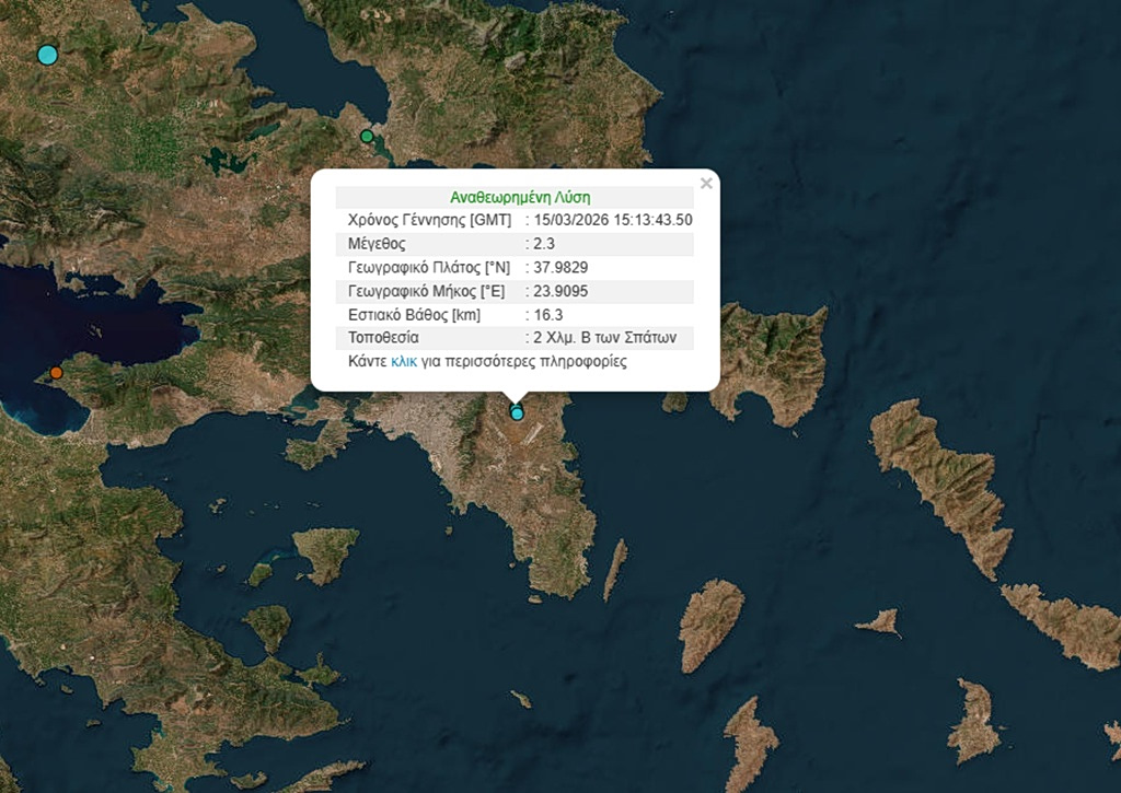 Ασθενής σεισμική δόνηση με επίκεντρο την περιοχή των Σπάτων έγινε αισθητή στης Αττική το απόγευμα της Κυριακής (15/3).