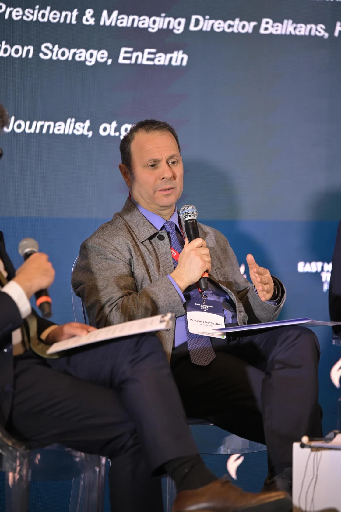 Ο Επικεφαλής Αποθήκευσης Άνθρακα της EnEarth, Νικόλας Ρήγας, σημείωσε ότι «πρέπει να εκμεταλλευτούμε την κρίση και να δούμε μπροστά», θέτοντας ως προτεραιότητα την προστασία της κοινωνίας και της βιομηχανίας από μελλοντικές κρίσεις. Αναφέρθηκε στο έργο Prinos CO2, το οποίο «αδειοδοτήθηκε τον Φεβρουάριο» και, όπως είπε, «θα επιτρέψει στη βιομηχανία να είναι και πράσινη», προσθέτοντας ότι πρόκειται για έργο που «ξαναδημιουργεί το offshore industry στην Ελλάδα» και αποτελεί «το επόμενο βήμα για να μείνουμε στην τοπική κοινωνία».