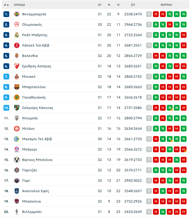 Ο Ολυμπιακός συνέχισε νικηφόρα στο ΣΕΦ, πετυχαίνοντας δεύτερη διαδοχική νίκη μέσα στην ίδια εβδομάδα. Μετά τη Φενέρμπαχτσε επικράτησε και της Μπασκόνια με 90-80, στο πλαίσιο της 32ης αγωνιστικής της Euroleague και πλέον βρίσκεται μια ανάσα από το να κλειδώσει και μαθηματικά το πλεονέκτημα έδρας.