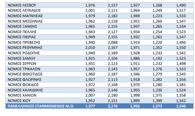 Παράλληλα, το Diesel κίνησης πωλείται κατά μέσο όρο στα 1,956 €/λτ., ενώ η αμόλυβδη 100 οκτανίων βρίσκεται στα 2,176 €/λτ.