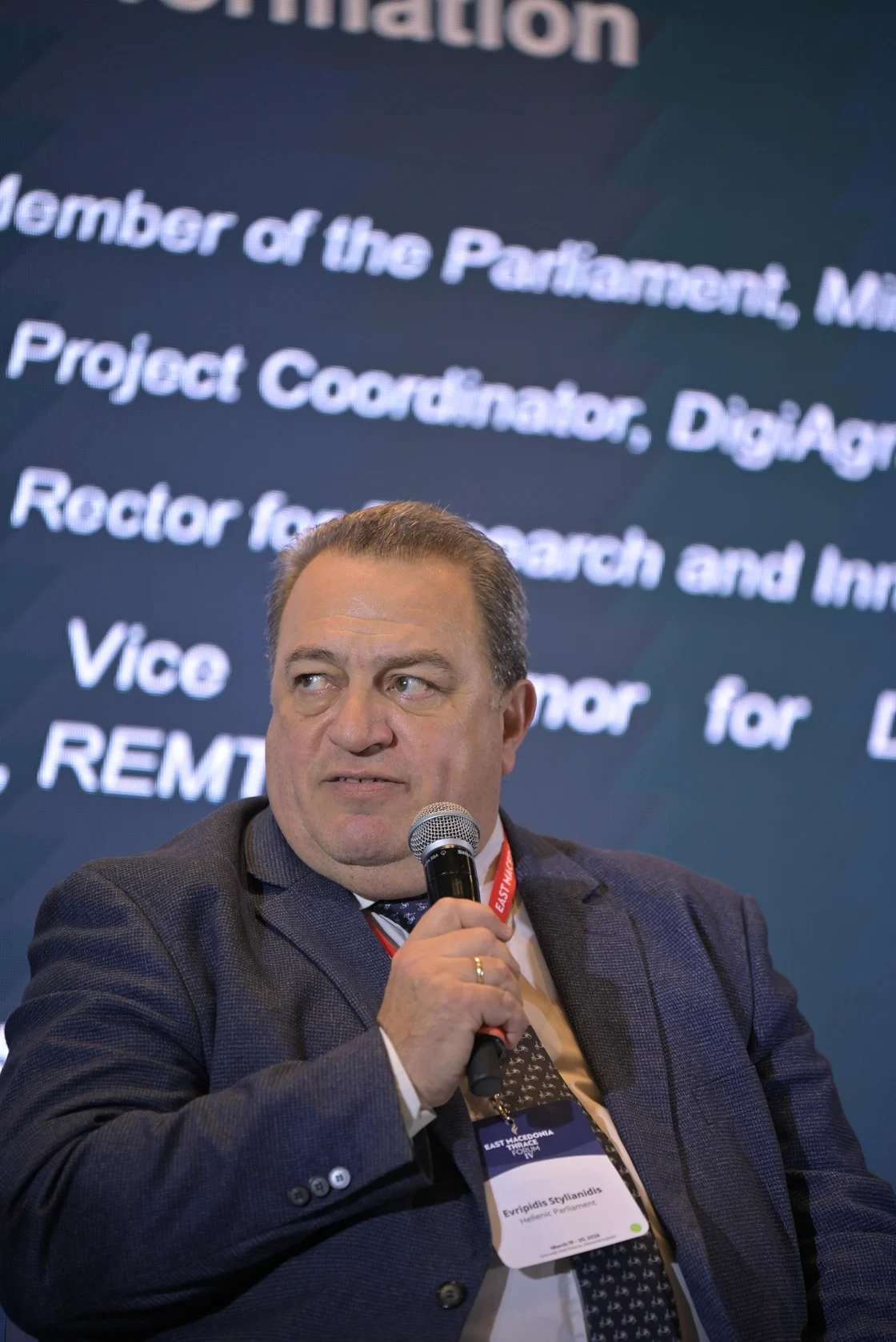 «Η Τεχνητή Νοημοσύνη μπορεί μόνο σε μεγάλα clusters να έχει αποτελέσματα που θα αλλάξουν το τοπίο και να φέρουν αποτελέσματα (drones, αισθητήρες εδάφους και αέρος κ.α., Copernicus, αυτόματα μηχανήματα ρομπότ με GPS ενσωματωμένα σε τρακτέρ χωρίς οδηγό που σπέρνουν, κάνουν αποκομιδή και στοχευμένους ψεκασμούς μόνο στα άρρωστα φυτά, κ.α.) και όχι σε μικρούς κλήρους». Όπως σημείωσε, είτε ως χώρα παρακολουθούμε τη νέα εποχή και επιβιώνουμε, ή μένουμε παρατηρητές και πεθαίνουμε.