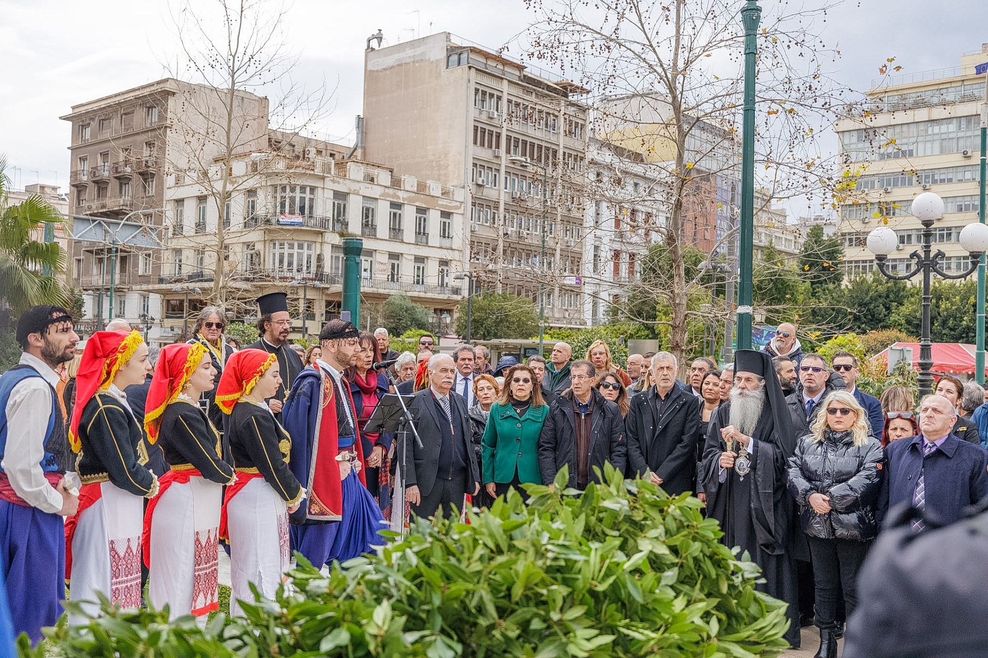 Την επιμνημόσυνη δέηση τέλεσε ο Σεβασμιώτατος Μητροπολίτης Πειραιώς κ.κ. Σεραφείμ, ενώ ακολούθησαν καταθέσεις στεφάνων, ομιλίες, καθώς και μουσικοχορευτικό πρόγραμμα με έντονα στοιχεία της κρητικής παράδοσης.