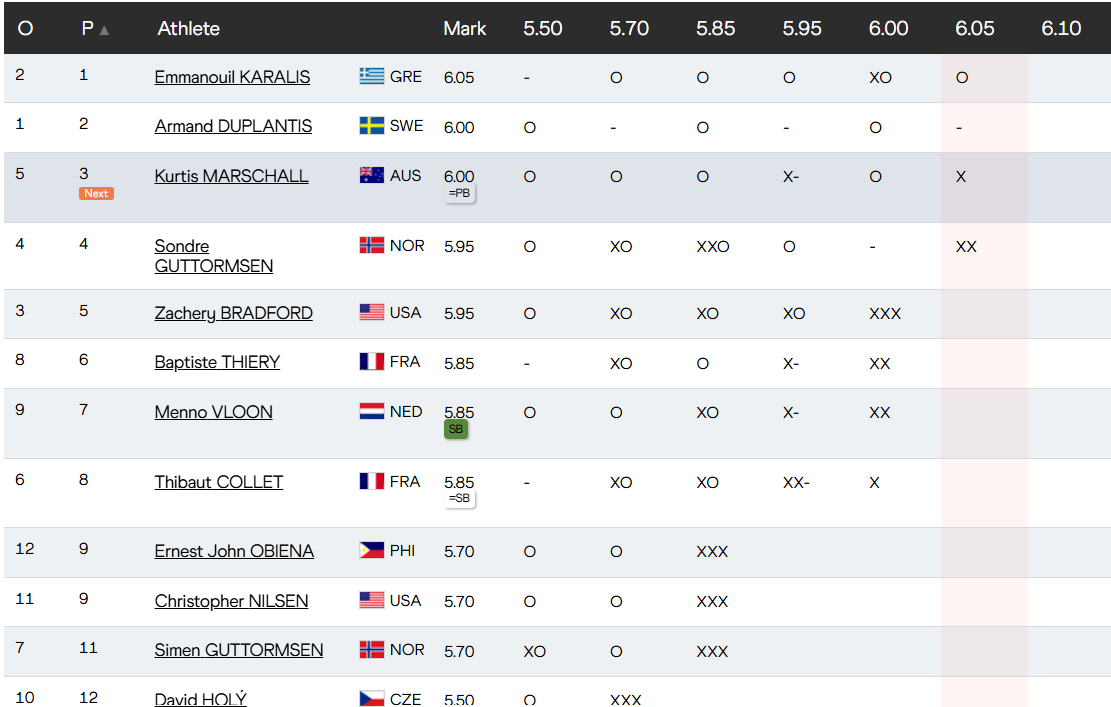 Ντουπλάντις Καραλής και Μάρσαλ θα είναι η τριάδα του βάθρου.