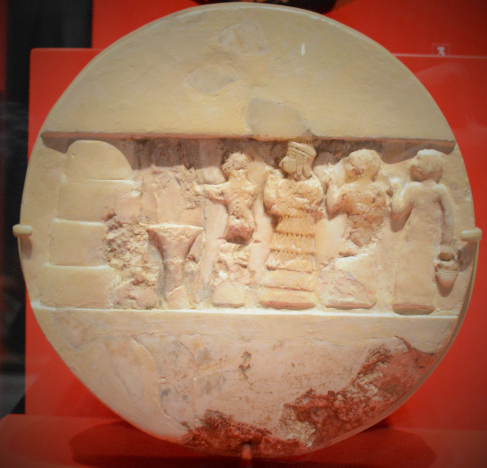 Η επιγραφή αναφέρει: «Ενχεδούανα, ιέρεια του Νάννα, κόρη του Σαργών, βασιλιά του κόσμου, στον ναό της θεάς Ινάνα». Η θέση της μορφής της στο δίσκο υπογραμμίζει την εξουσία και την πολιτισμική της βαρύτητα.