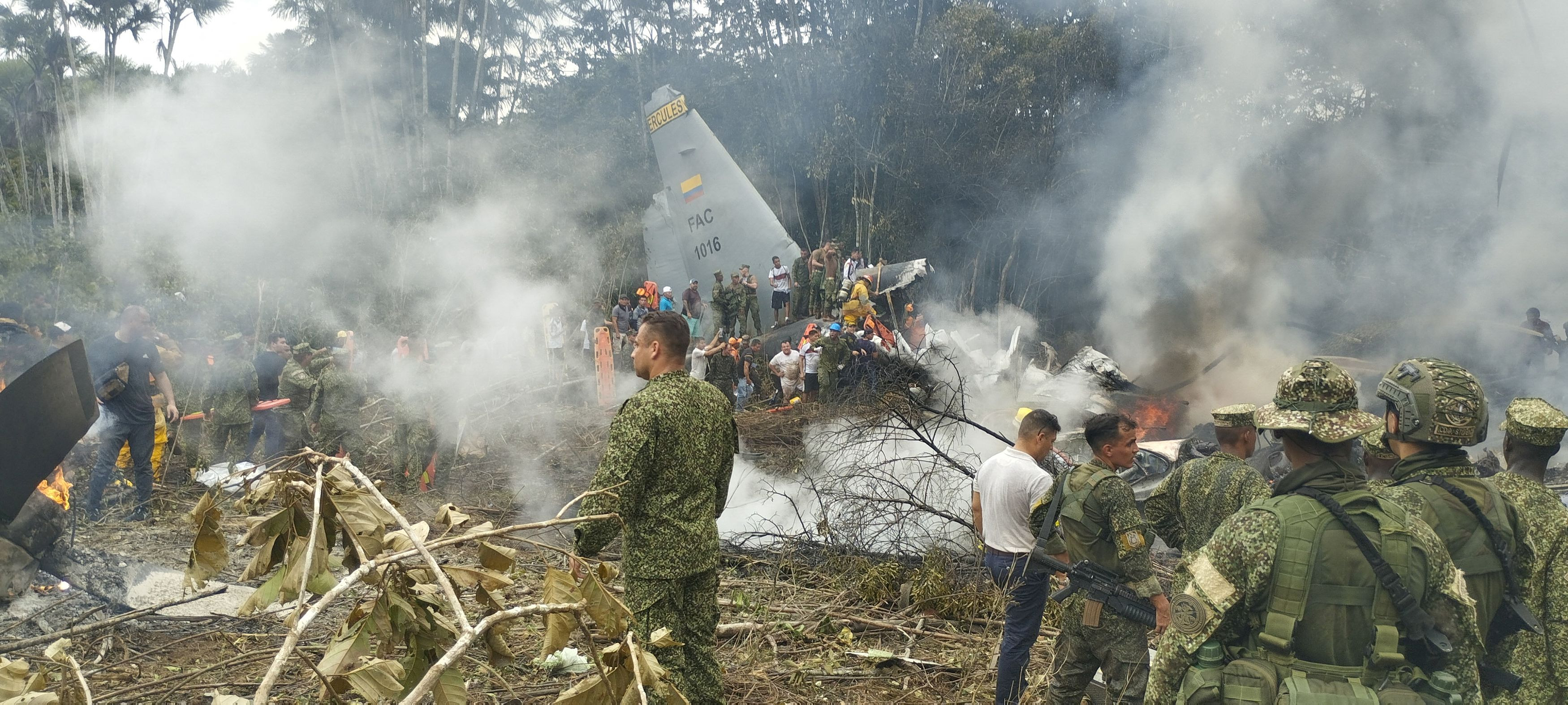 Το Hercules C-130 των κολομβιανών ενόπλων δυνάμεων συνετρίβη λίγο μετά την απογείωσή του από το Πουέρτο Λεγκίσαμο στο διαμέρισμα Πουτουμάγιο. Σε βίντεο που μετέδωσε η κολομβιανή τηλεόραση φαίνονται τα φλεγόμενα συντρίμμια του αεροσκάφους σε δασώδη περιοχή, περίπου τρία χιλιόμετρα μακριά από κατοικημένη ζώνη.