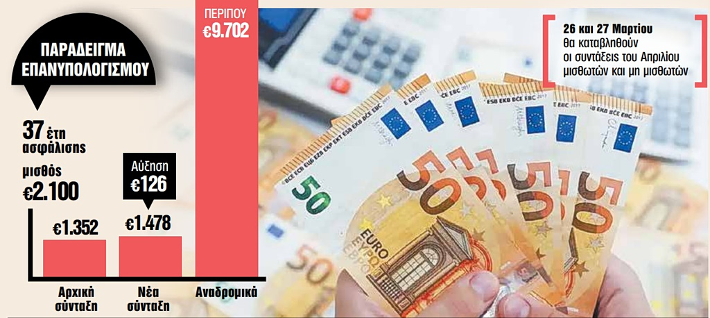 Ο επανυπολογισμός αφορά συνταξιούχους που αποχώρησαν μετά τον Μάιο του 2016, όταν οι συντάξεις υπολογίστηκαν με τον νόμο Κατρούγκαλου (4387/2016). Με τον μεταγενέστερο νόμο Βρούτση αυξήθηκαν τα ποσοστά αναπλήρωσης για όσους έχουν 30 και πλέον έτη ασφάλισης.