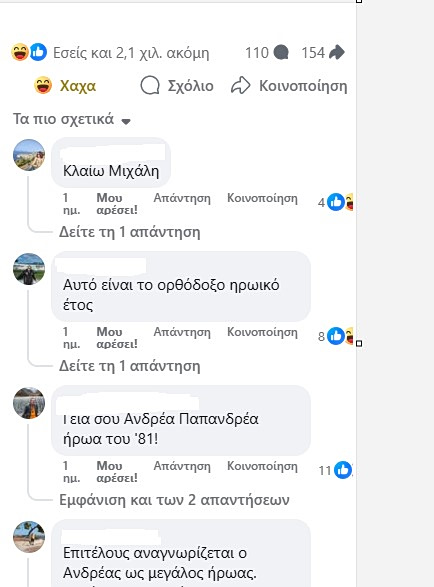«Επιτέλους αναγνωρίζεται ο Ανδρέας ως μεγάλος ήρωας. Κατήργησε τον νόμο 330 του Καραμανλή και έφερε τη Δημοκρατία!»