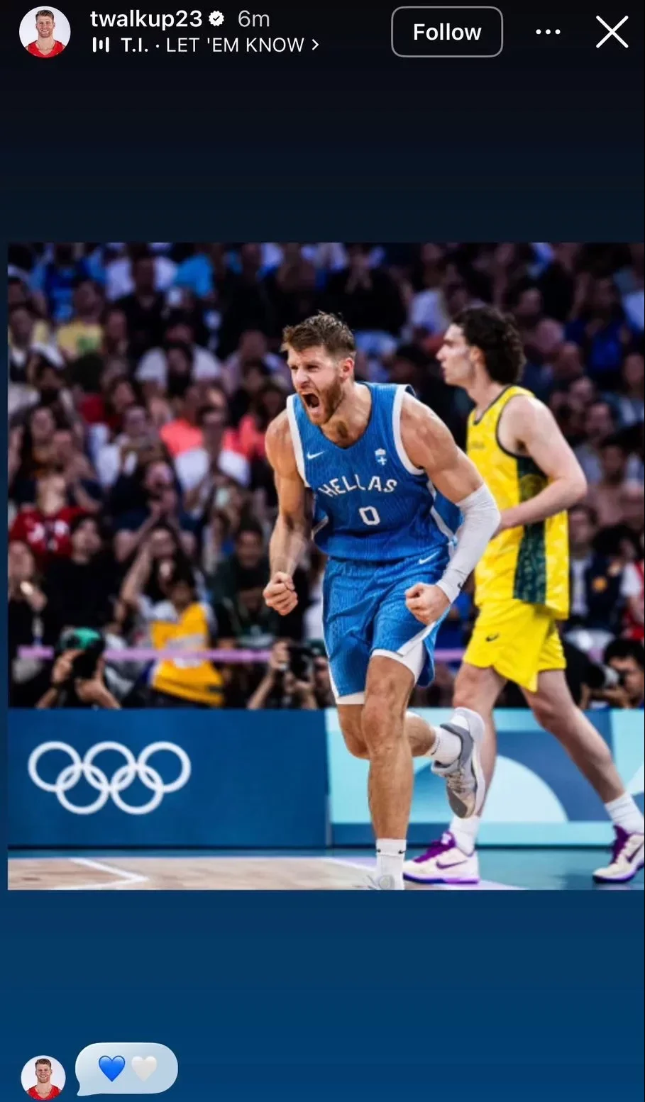 Συγκεκριμένα, δημοσίευσε φωτογραφία στην οποία εμφανίζεται με τη φανέλα της Εθνικής Ελλάδας από αγώνα απέναντι στην Αυστραλία στους Ολυμπιακούς Αγώνες του 2024.