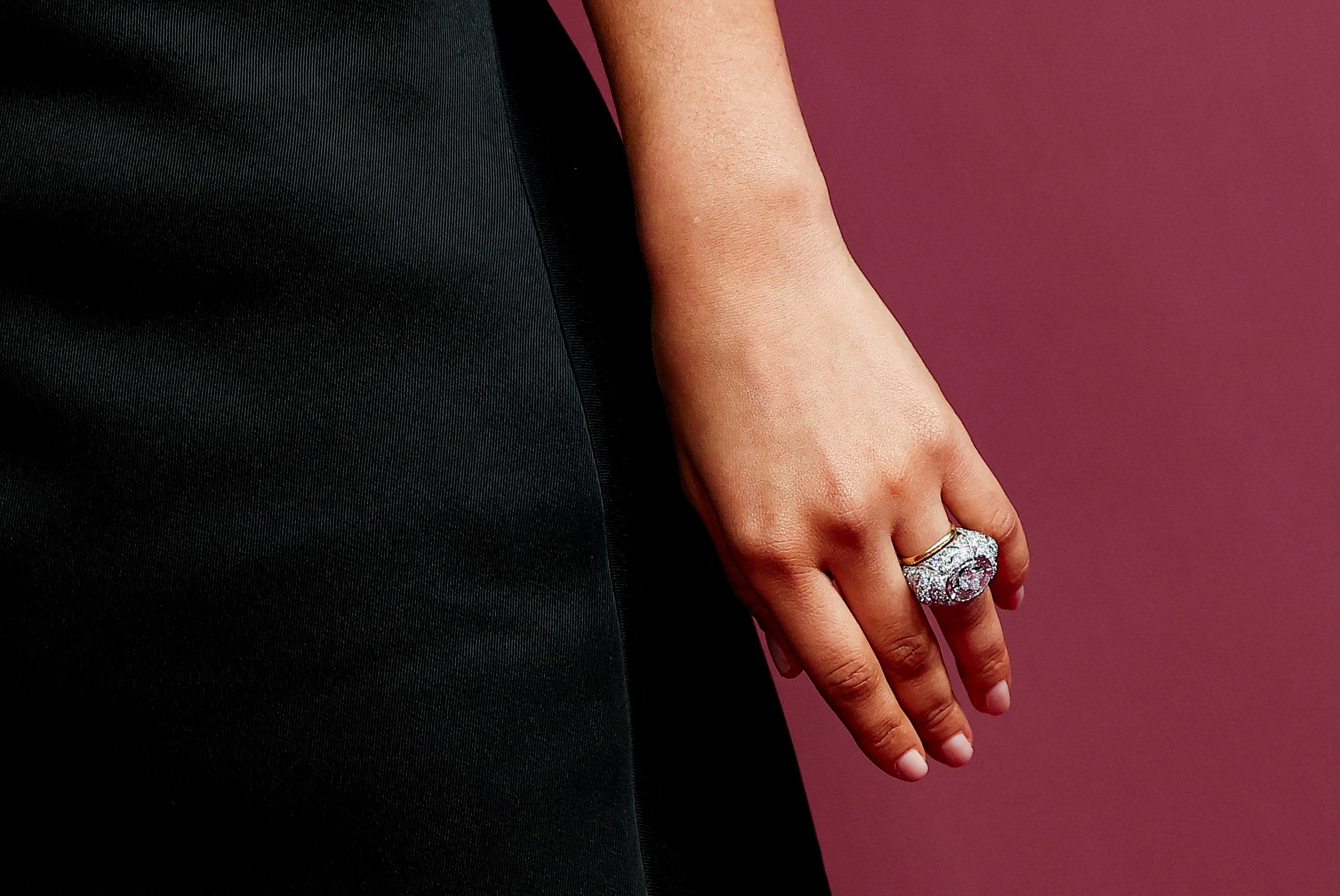 Detail on the ring of Zendaya as she attends the Italian premiere and red carpet for the film “The Drama” in Rome, Italy, March 26, 2026. REUTERS/Guglielmo Mangiapane