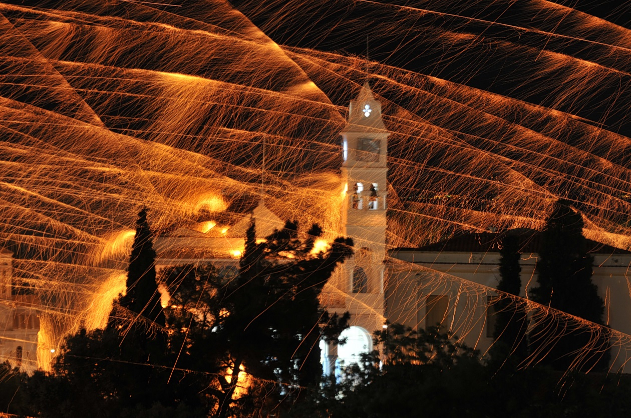 Η προετοιμασία ξεκινάει πολύ πριν από τη Μεγάλη Εβδομάδα. Οι ρουκέτες κατασκευάζονται χειροποίητα, με ακρίβεια και εμπειρία που περνάει από γενιά σε γενιά. Το βράδυ της Ανάστασης ο ουρανός γεμίζει φως και ήχο. Από μακριά μοιάζει σχεδόν κινηματογραφικό σκηνικό. Από κοντά, καταλαβαίνεις ότι πρόκειται για κάτι πιο βαθύ. Είναι ένα έθιμο που ενώνει την κοινότητα, κρατάει ζωντανή την παράδοση και δίνει στο Πάσχα έναν εντελώς διαφορετικό χαρακτήρα.