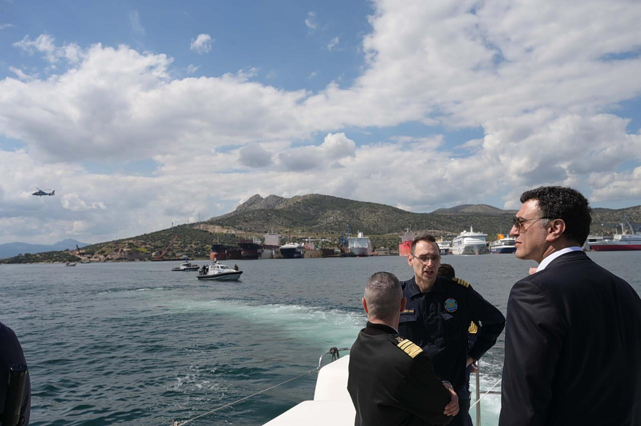 Με επιτυχία πραγματοποιήθηκε η ευρείας κλίμακας Άσκηση αντιμετώπισης περιστατικού θαλάσσιας ρύπανσης χθες στην Ελευσίνα, υπό το συντονισμό της Διεύθυνσης Προστασίας Θαλασσίου Περιβάλλοντος (ΔΙ.Π.ΘΑ.Π.), παρουσία του Υπουργού Ναυτιλίας και Νησιωτικής Πολιτικής, Βασίλη Κικίλια και του Αρχηγού του Λιμενικού Σώματος – Ελληνικής Ακτοφυλακής, Αντιναυάρχου Λ.Σ. Χρήστου Κοντορουχά.