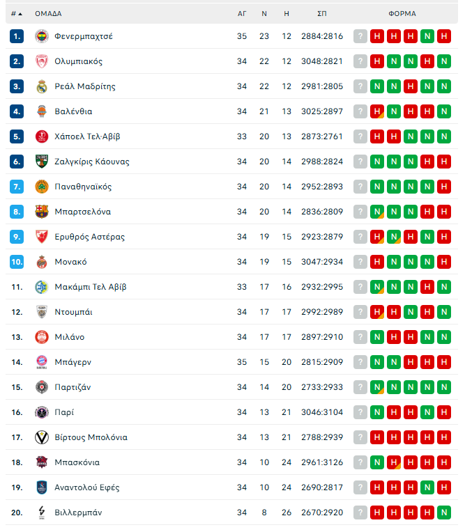 Η ομάδα του Σαρούνας Γιασικεβίτσιους μετρά πλέον πέντε ήττες στα τελευταία έξι παιχνίδια της στη διοργάνωση, γεγονός που δείχνει πως έχει μπει σε αρνητικό μομέντουμ σε ένα κρίσιμο σημείο της σεζόν.