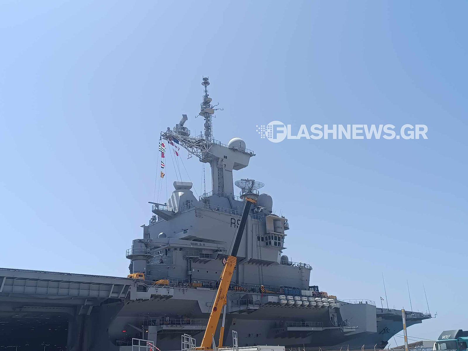 Το εμβληματικό πολεμικό πλοίο του γαλλικού ναυτικού πραγματοποιεί στάση για ανεφοδιασμό και τεχνική υποστήριξη, πριν επιστρέψει στην ευρύτερη περιοχή της Ανατολικής Μεσογείου, όπου επιχειρεί το τελευταίο διάστημα.