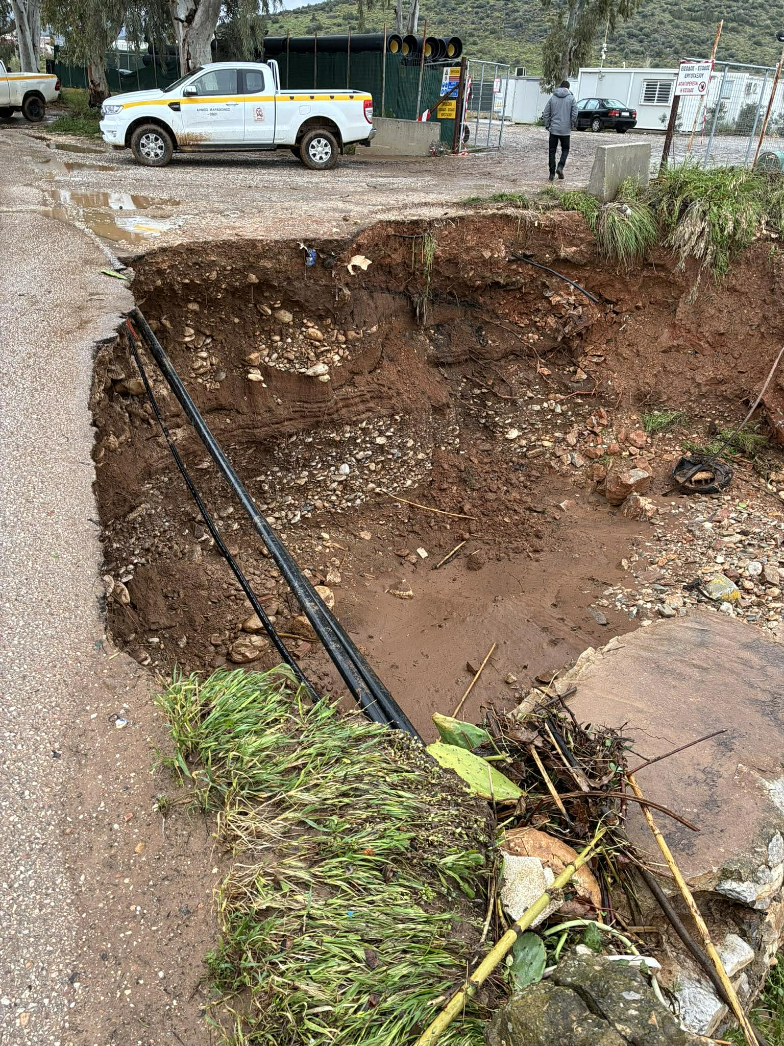 Στο σημείο βρίσκονται συνεργεία του Δήμου απομακρύνοντας τα υλικά, ένα οχήματα της Πυροσβεστικής πραγματοποιούν διαρκώς αντλήσεις από σπίτια που έχουν πλημμυρίσει.