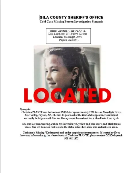 Μια συγκλονιστική εξέλιξη σημειώθηκε στην Aριζόνα των ΗΠΑ, καθώς εντοπίστηκε ζωντανή, ύστερα από 32 χρόνια, η 13χρονη Κριστίνα Μαρί Πλαντ, η οποία είχε εξαφανιστεί από τη Σταρ Βάλεϊ, στα βορειοανατολικά του Φοίνιξ, στις 16 Μαΐου 1994.