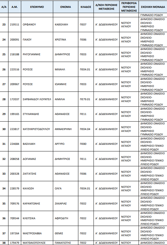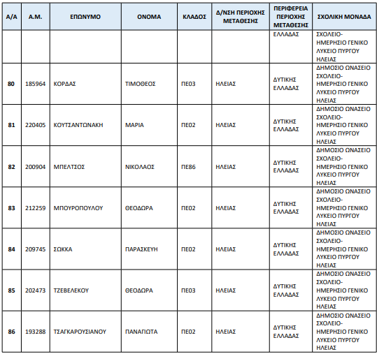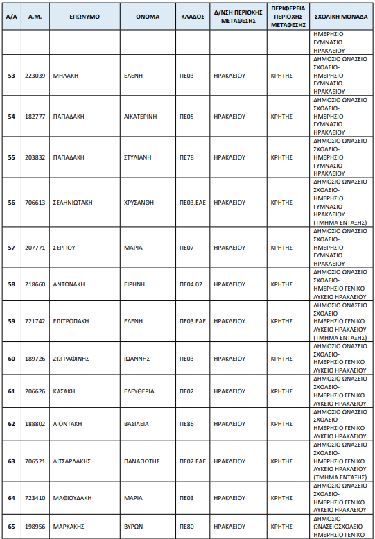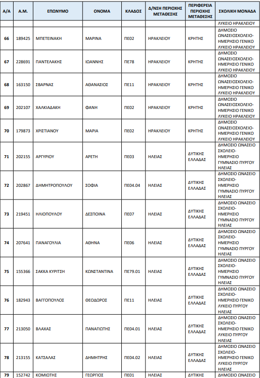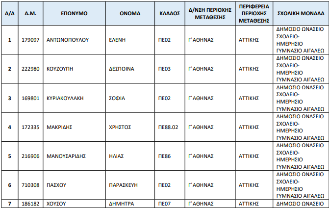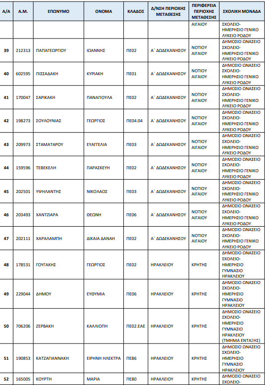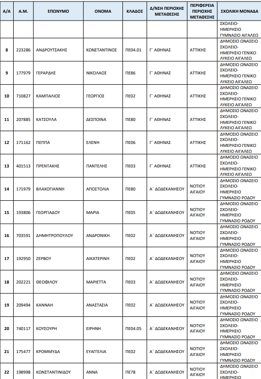 Για τη διευκόλυνση των ενδιαφερομένων, μπορείτε να δείτε την πλήρη λίστα με τα ονόματα, τις ειδικότητες και τις σχολικές μονάδες τοποθέτησης ΕΔΩ.