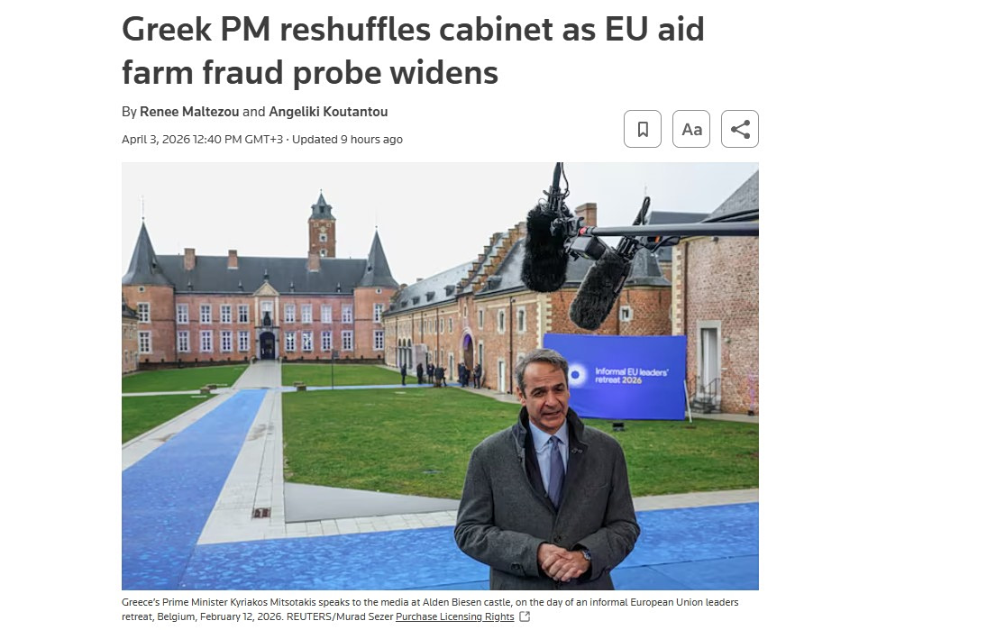Το Bloomberg παρουσιάζει την υπόθεση ως μείζον πολιτικό και θεσμικό ζήτημα, υπογραμμίζοντας ότι ο ανασχηματισμός πραγματοποιήθηκε ενώ εντείνονται οι έρευνες για πιθανή κατάχρηση αγροτικών κονδυλίων. Σύμφωνα με το δημοσίευμα, το σκάνδαλο έχει εξελιχθεί σε βασικό πεδίο πολιτικής αντιπαράθεσης, με την αντιπολίτευση να αυξάνει την πίεσή της προς την κυβέρνηση.