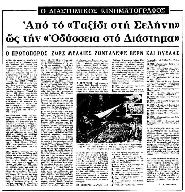 Τήν ώρα πού τυπώνονται αὐτές ο γραμμές, οἱ ἀστροναῦτες “Αρμστρογκ καί Ωλντριν ἀφήνουν τά ἴχνη τῶν βημάτων τους στή Σελήνη. Τά ἴχνη αὐτά θά μείνουν ἀνεξάλειπτα στούς αἰῶνες τῶν αὐ ξάλειπτα στούς αἰωνες τῶν αίω νων, γύρω στήν ἐξέδρα τῆς σεληνακάτου, μέ τίς 137 σημαίες τῶν κρατῶν τῆς Γῆς καί τά μετάλλια τῶν πέντε πρώτων μαρτύρων του Διαστήματος…».