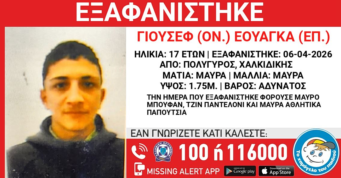 Ο έφηβος εξαφανίστηκε τις πρωινές ώρες της 6ης Απριλίου και το «Χαμόγελο του Παιδιού» προχώρησε σε δημοσιοποίηση των στοιχείων του, κατόπιν εισαγγελικής εντολής, καθώς ενδέχεται να συντρέχουν λόγοι οι οποίοι θέτουν την ζωή του σε κίνδυνο.