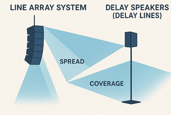Τα delay speakers ρυθμίζονται σε χιλιοστά του δευτερολέπτου ώστε ο ήχος από την κύρια πηγή και τις καθυστερημένες ζώνες να φτάνει ταυτόχρονα στους ακροατές, εξασφαλίζοντας σταθερή ένταση χωρίς echo και υπερβολική ενέργεια μπροστά, προστατεύοντας την ακοή, αποφεύγοντας τα προβλήματα ήχου σε εκδηλώσεις.