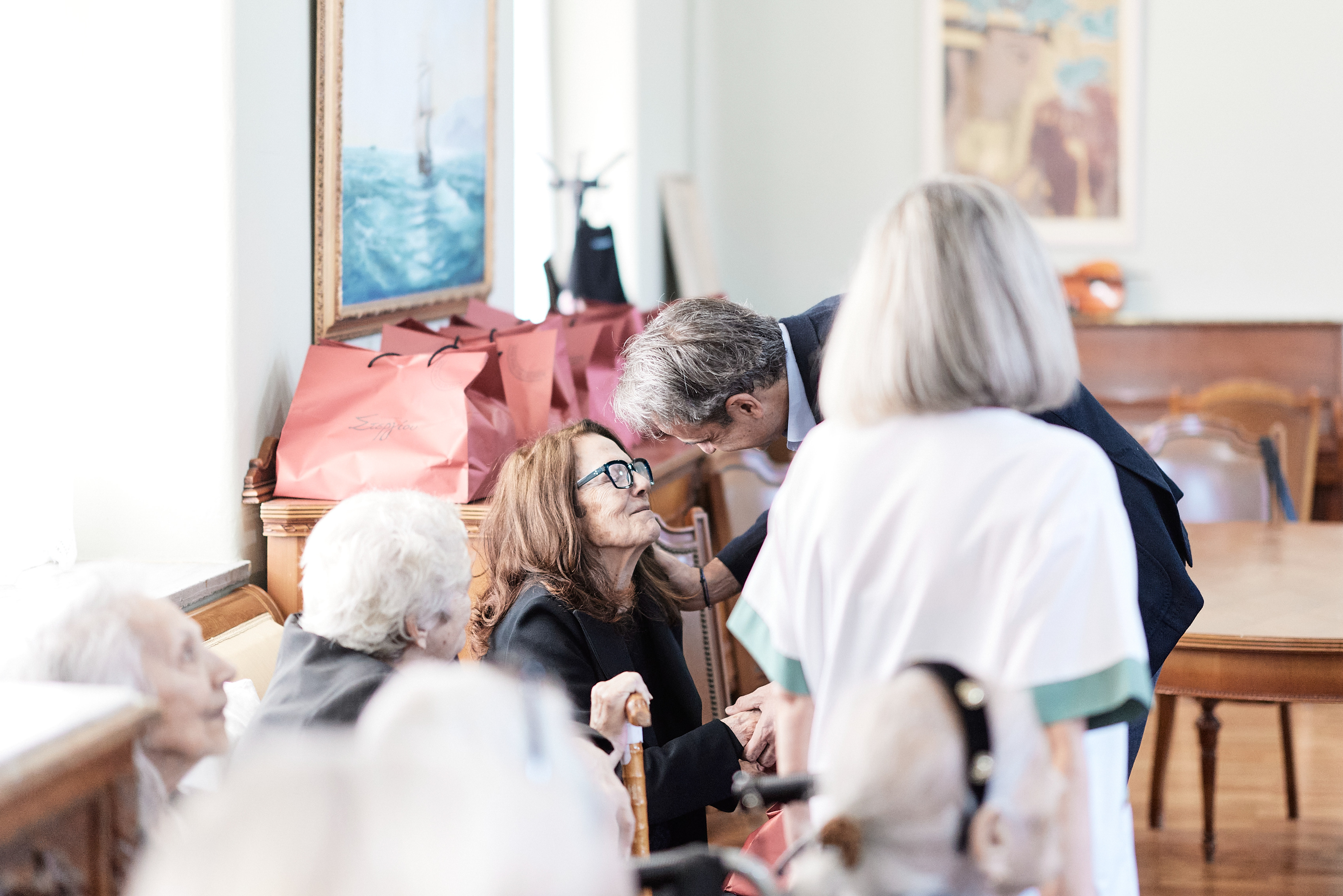 Ο Πρόεδρος του Γηροκομείου Σπύρος Χαμακιώτης δήλωσε: «Είστε ο πρώτος Πρωθυπουργός που επισκέπτεται το σωματείο μας, το παλαιότερο φιλανθρωπικό σωματείο της χώρας, ιδρυθέν το 1864, κ. Πρωθυπουργέ. Είστε η μόνη κυβέρνηση με τους πολύτιμους Υπουργούς σας που επί θητείας σας κατόρθωσε και αναβίωσε αυτό το πολύπαθο, θα έλεγα, σωματείο μας τα τελευταία χρόνια, που ήταν σε κατάσταση πτώχευσης, τα τελευταία 25 χρόνια.