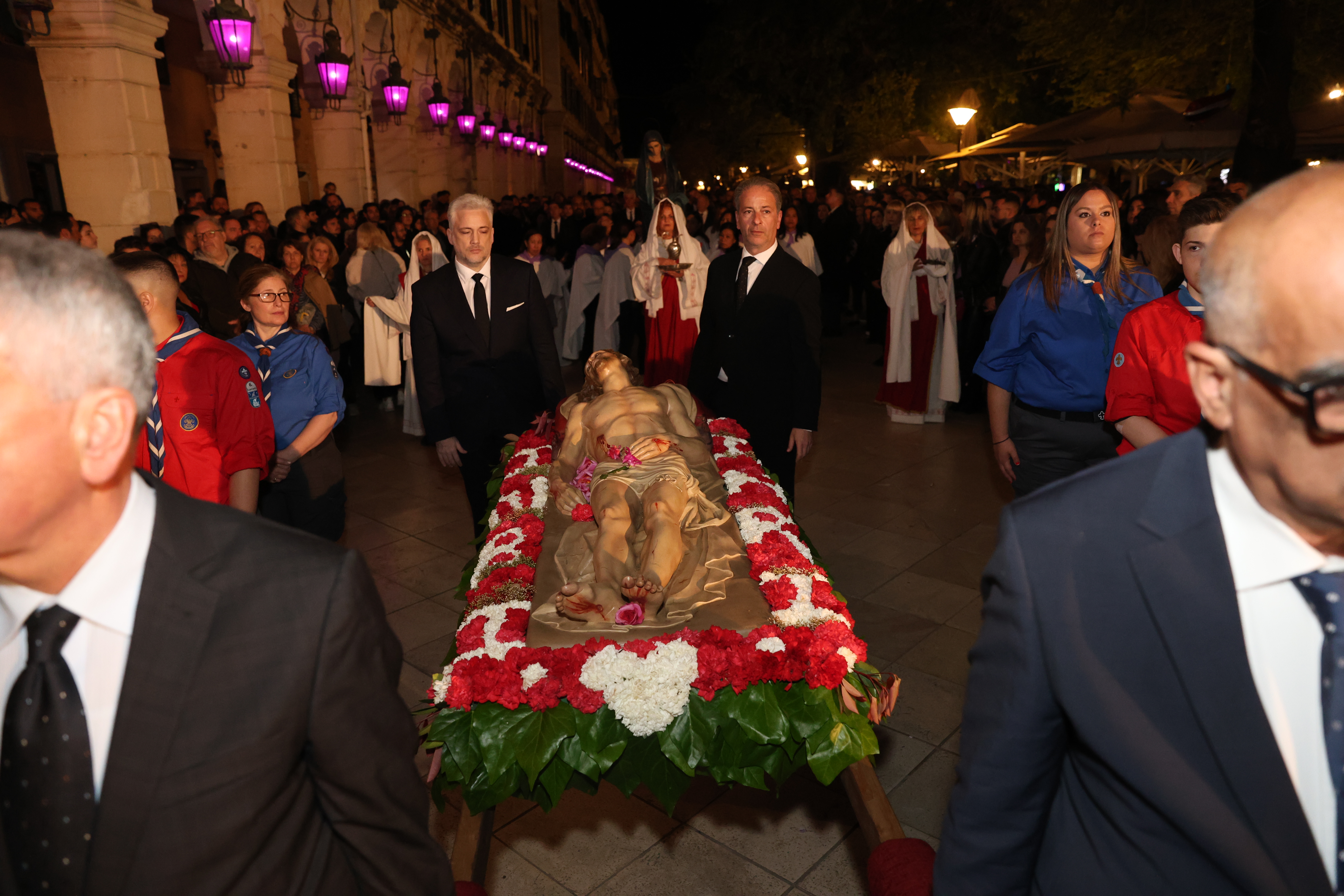 Η περιφορά ξεκινά από το μεσημέρι, με χαρακτηριστικό παράδειγμα εκείνη του Ιερού Ναού Παντοκράτορος, και συνεχίζεται έως αργά το βράδυ. Κάθε ενορία συνοδεύεται από τη δική της φιλαρμονική μπάντα, η οποία αποδίδει συγκλονιστικά πένθιμα έργα, όπως το «Adagio» του Albinoni, τη «Marcia Funebre» του Verdi και το «Calde Lacrime», ενισχύοντας τη μοναδική κατανυκτική ατμόσφαιρα του νησιού.