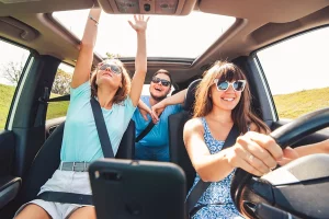 Τα παιδιά θα πρέπει να κάθονται πάντοτε πίσω και δεμένα με τη ζώνη ασφαλείας – εφόσον έχουν το κατάλληλο ύψος, διαφορετικά στα ειδικά παιδικά καθίσματα. Φροντίστε τα παιδιά να είναι κατά τη διάρκεια του ταξιδιού απασχολημένα με διάφορα παιχνίδια. Ο συνοδηγός μπορεί να κρατά ενήμερα τα παιδιά για το πότε θα φθάσουν – ώστε να μην παραπονιούνται.