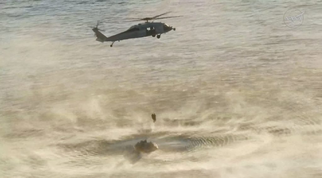 Αναμενόταν ότι οι ομάδες της NASA και του Πολεμικού Ναυτικού των ΗΠΑ θα χρειαστούν περίπου μία ώρα για να ασφαλίσουν την πλωτή κάψουλα, να βοηθήσουν τους τέσσερις αστροναύτες να βγουν και να τους μεταφέρουν σε ένα κοντινό πλοίο διάσωσης για να υποβληθούν σε αρχικό ιατρικό έλεγχο.