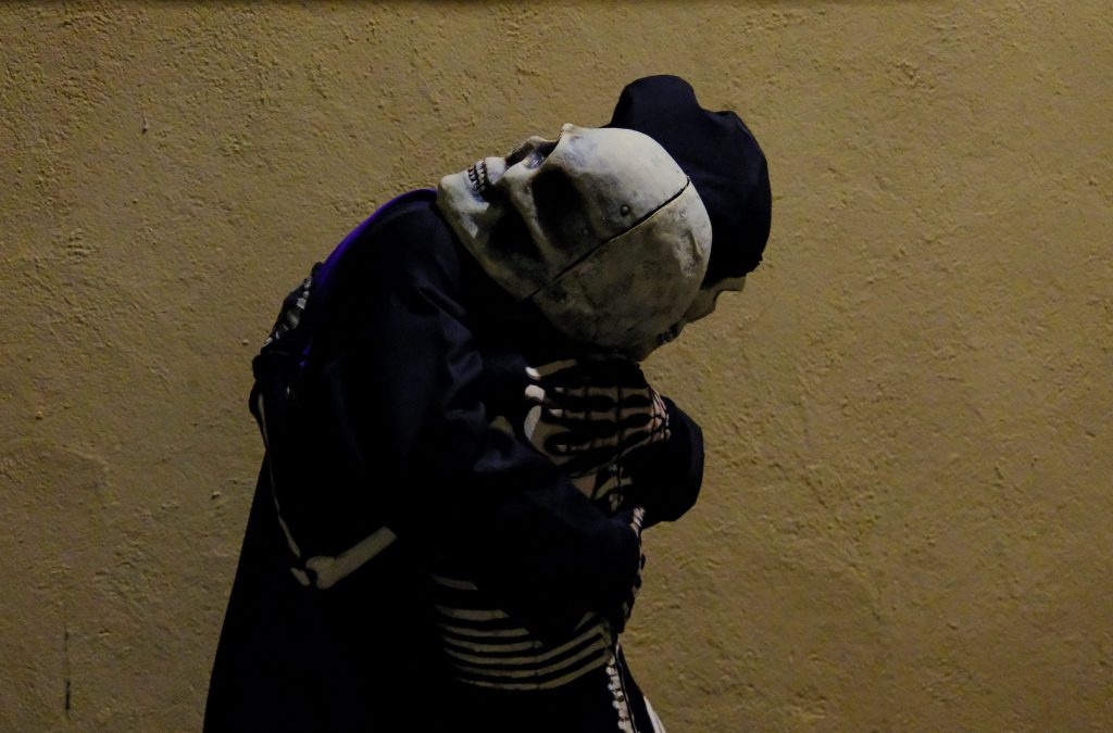 Πέντε άτομα, συχνά και παιδιά, φορούν μαύρες στολές ζωγραφισμένες με σκελετούς και κινούνται με αργό, υποβλητικό ρυθμό τυμπάνων. Κάθε σκελετός κρατά αντικείμενα που συμβολίζουν τον θάνατο: ένα δρεπάνι, ένα ρολόι χωρίς δείκτες, μια σημαία και πιάτα με στάχτη.