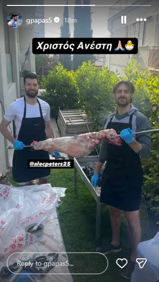 Ο φόργουορντ του Ολυμπιακού και ο παίκτης του Αμαρουσίου, που στο παρελθόν φόρεσε και τα «ερυθρόλευκα», πέρασαν χρόνο μαζί και έβαλαν οι ίδιοι… φωτιά στη σούβλα, ψήνοντας αρνί για να γιορτάσουν.